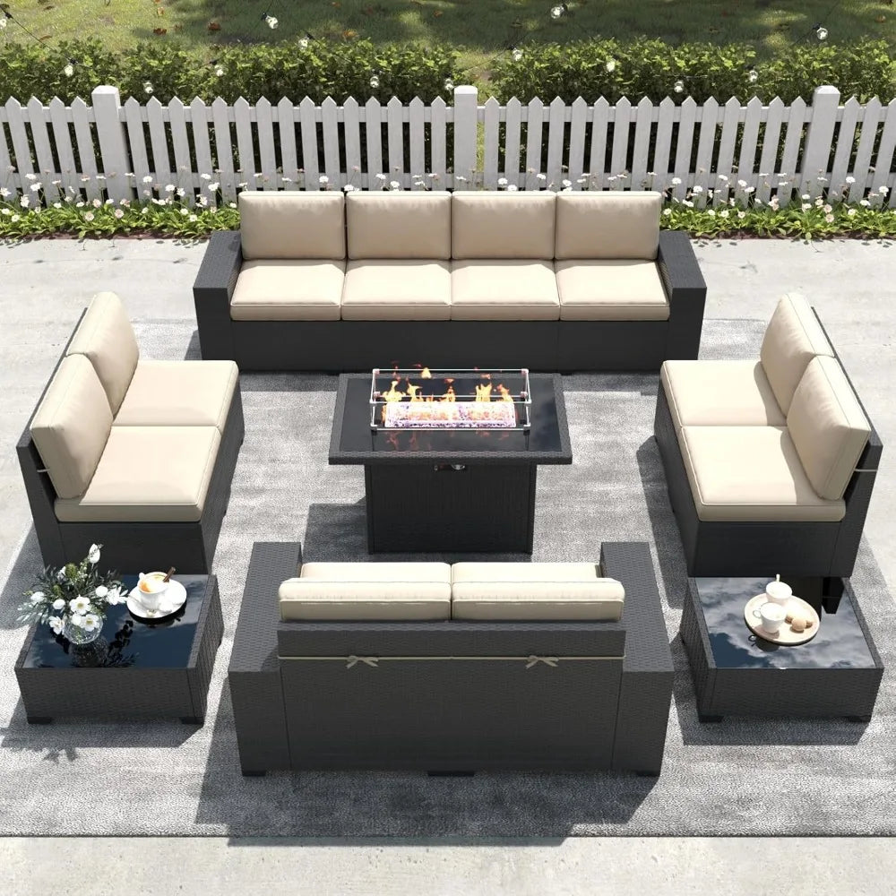 Small Living Room Sofa Set- 4 Piece Patio Conversation Set, with Sofa, 2 Chairs, and Coffee Table, for Porch