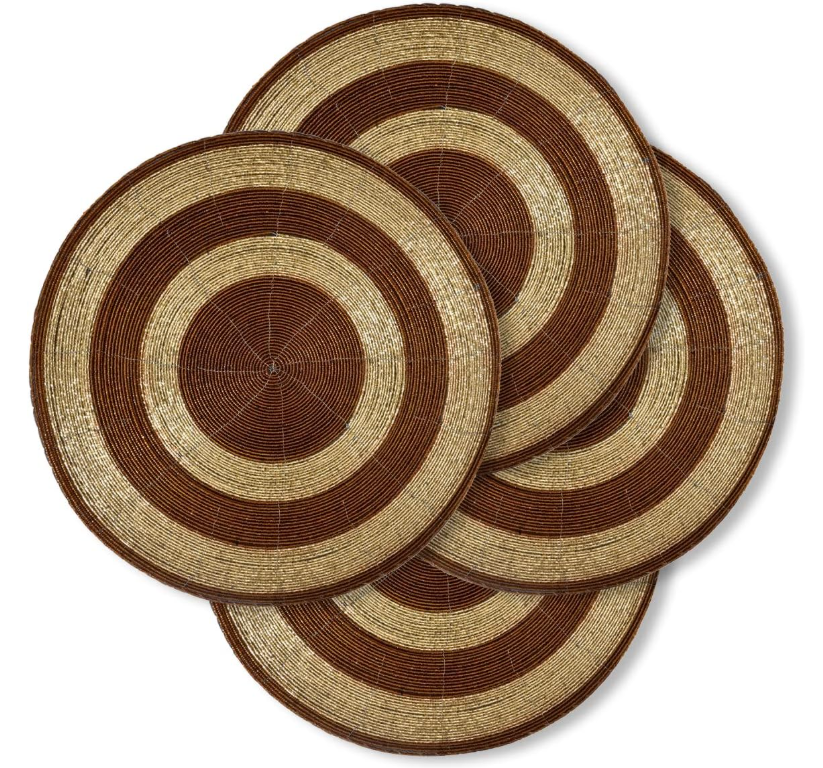 Silver Beaded Placemats – Set of 4 Elegant 14" Handmade Charger Mats for Glamorous Dining Table Decor