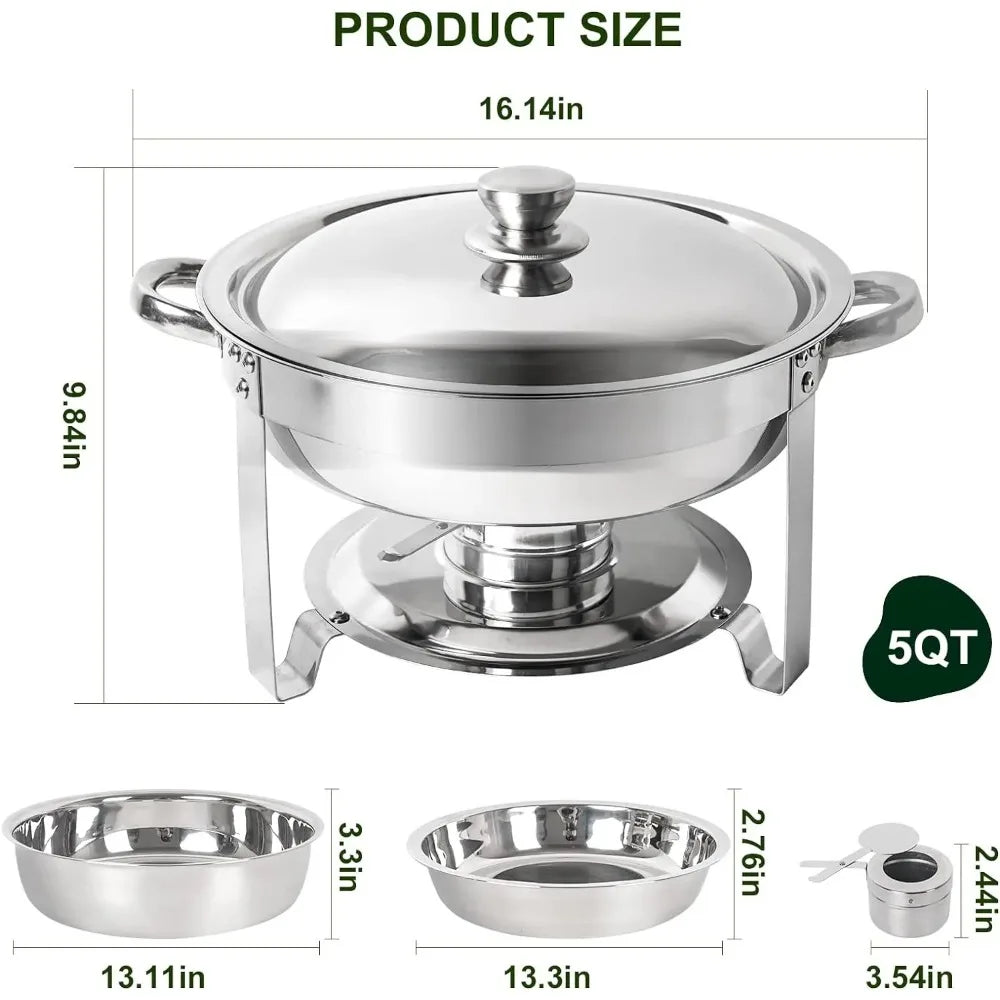 Chafing Dish Buffet Set of 2 Pack: 5QT Round Stainless-Steel Chafer for Catering