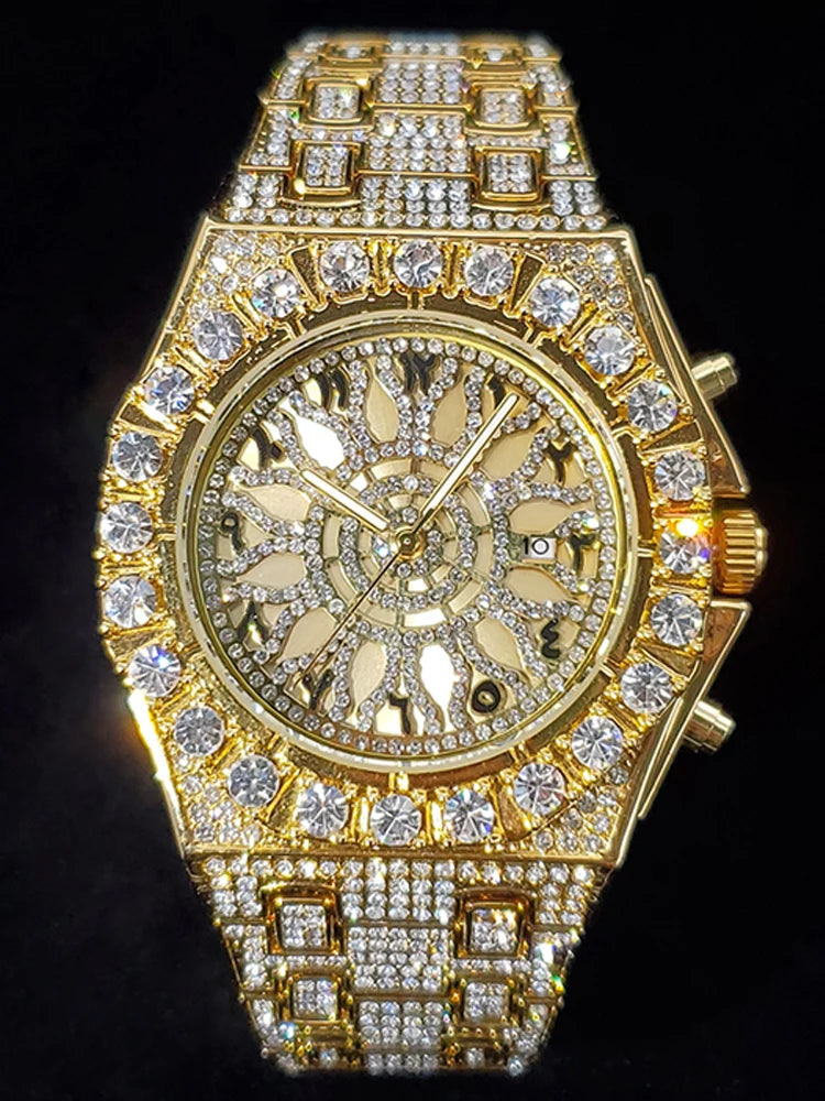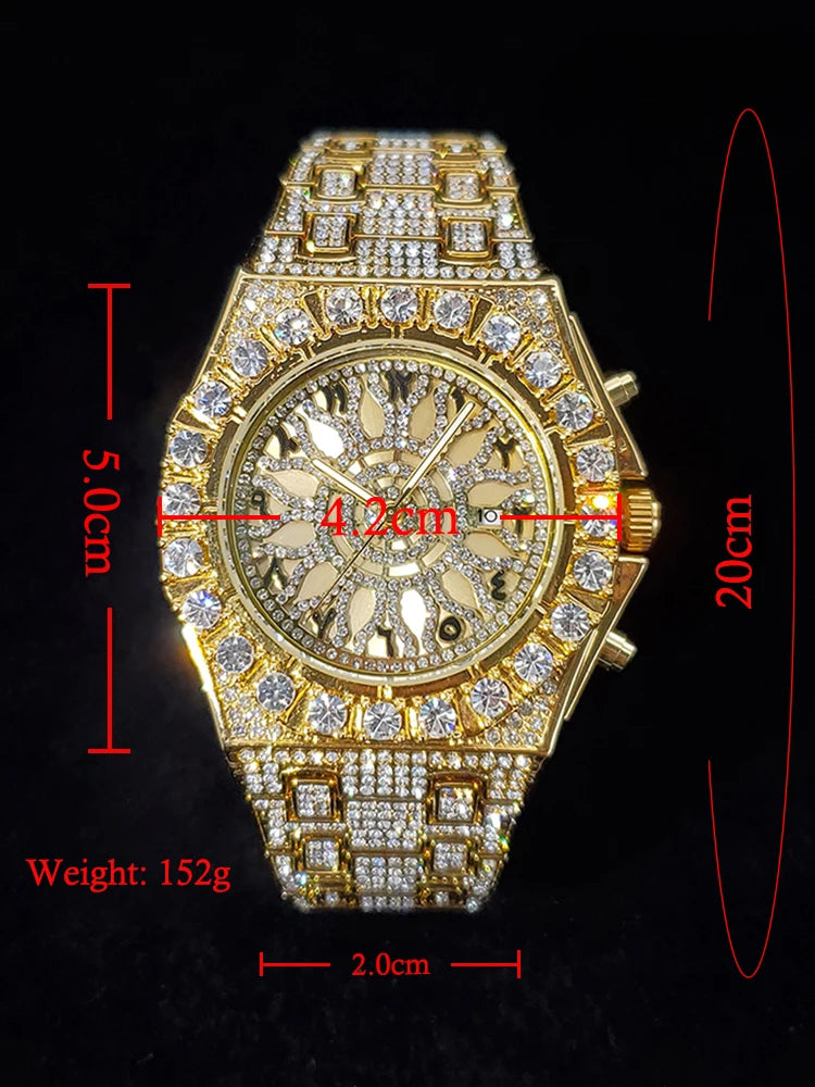 Best-Selling Men’s Iced-Out Diamond Quartz Watch – Luxury Crystal Analog Timepiece