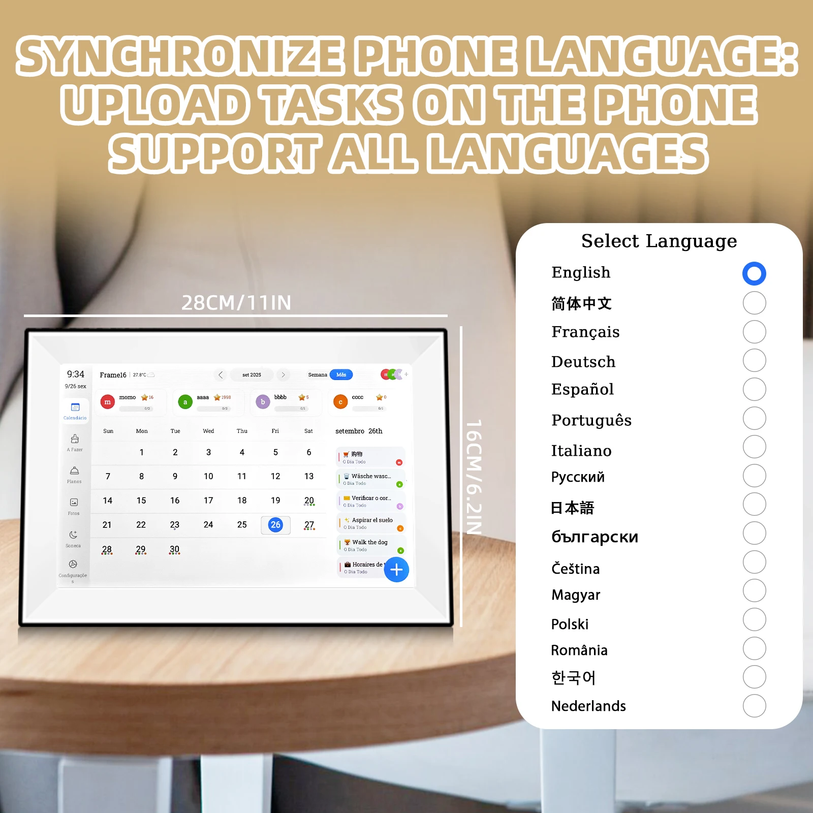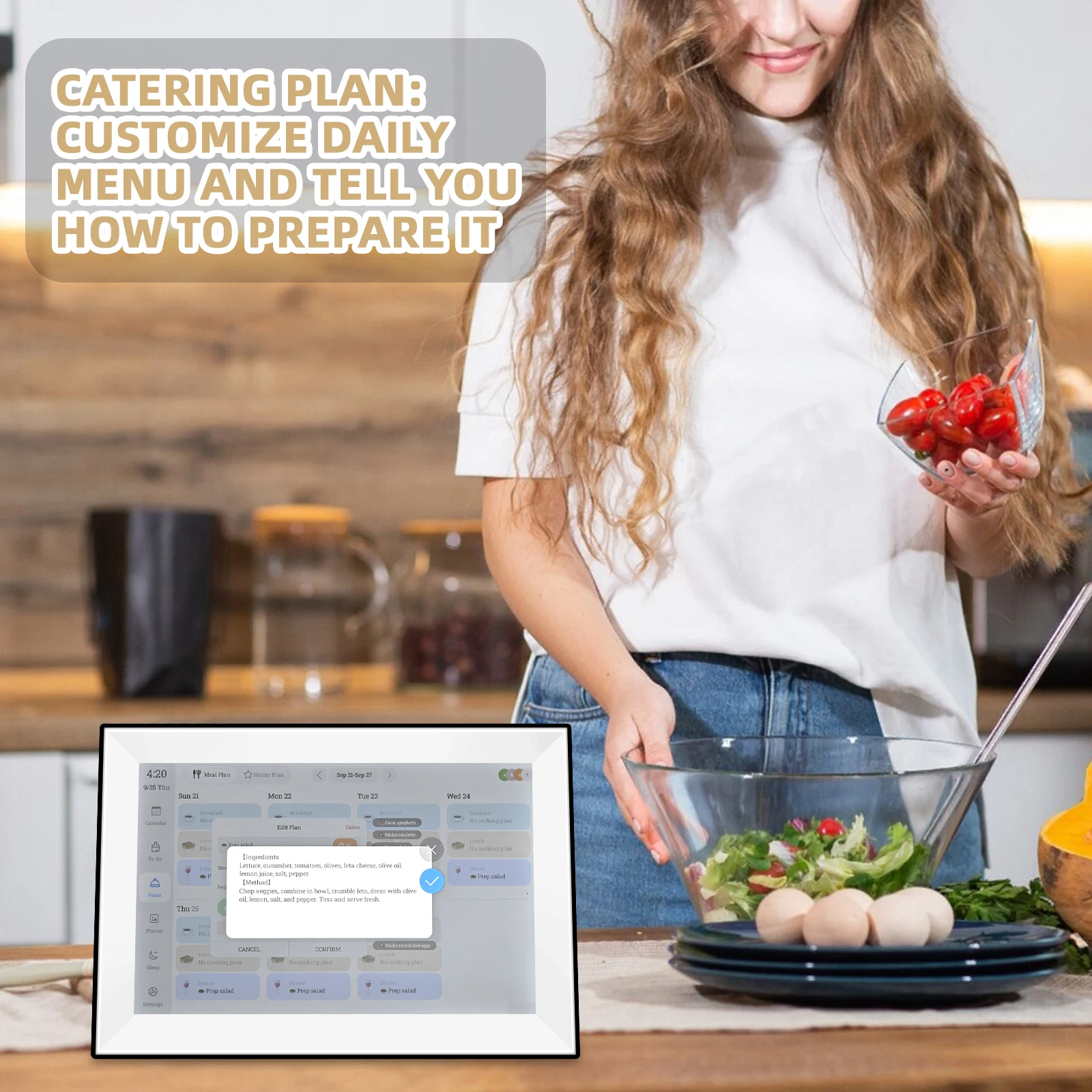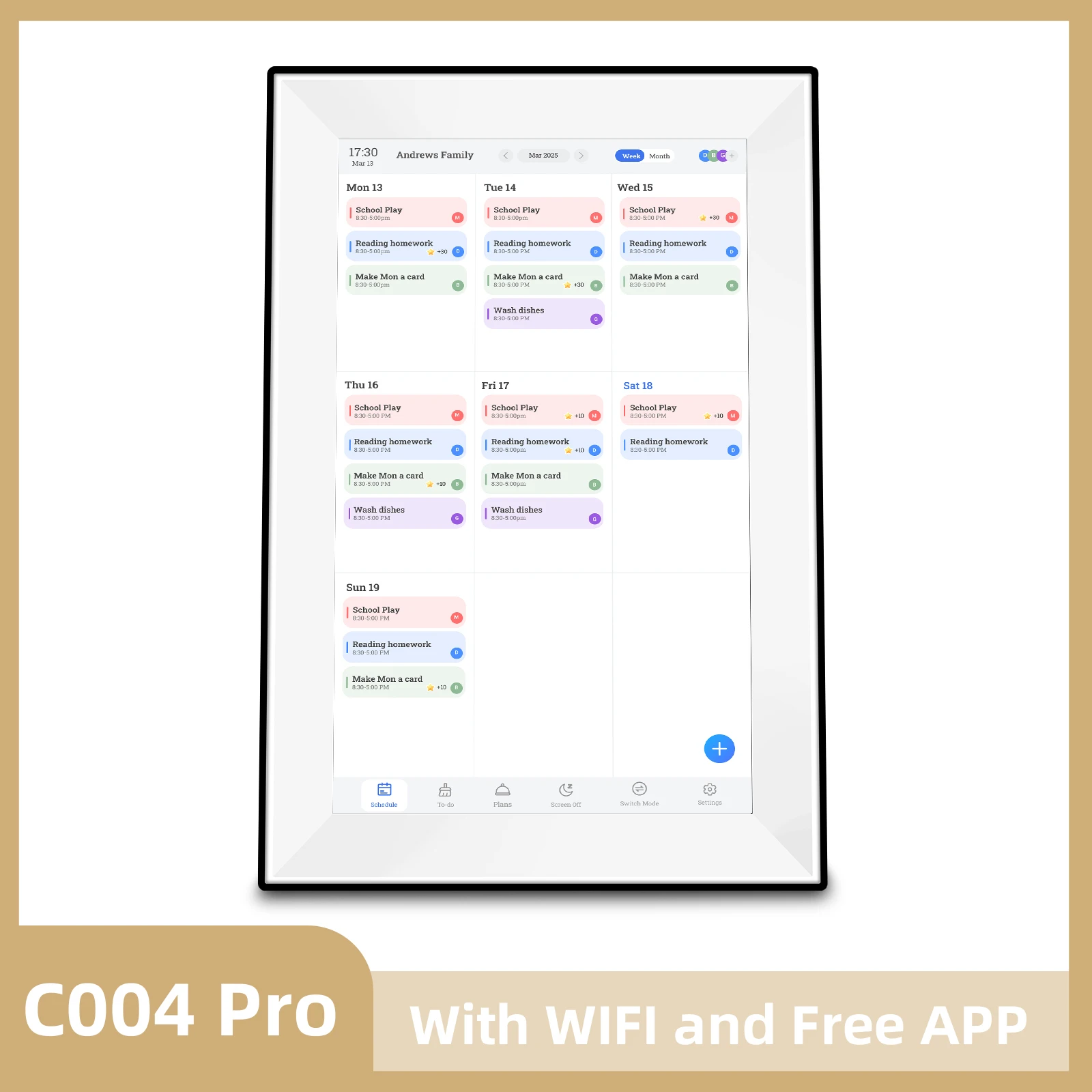 Synchronize family schedules, support voice reminders, holiday markers, and to-do list management, so that the whole family can collaborate without missing important matters.Visual schedule: Built-in editable table, supports adding birthdays, anniversaries, and to-do items, and synchronously pushes them to family members' mobile phones
